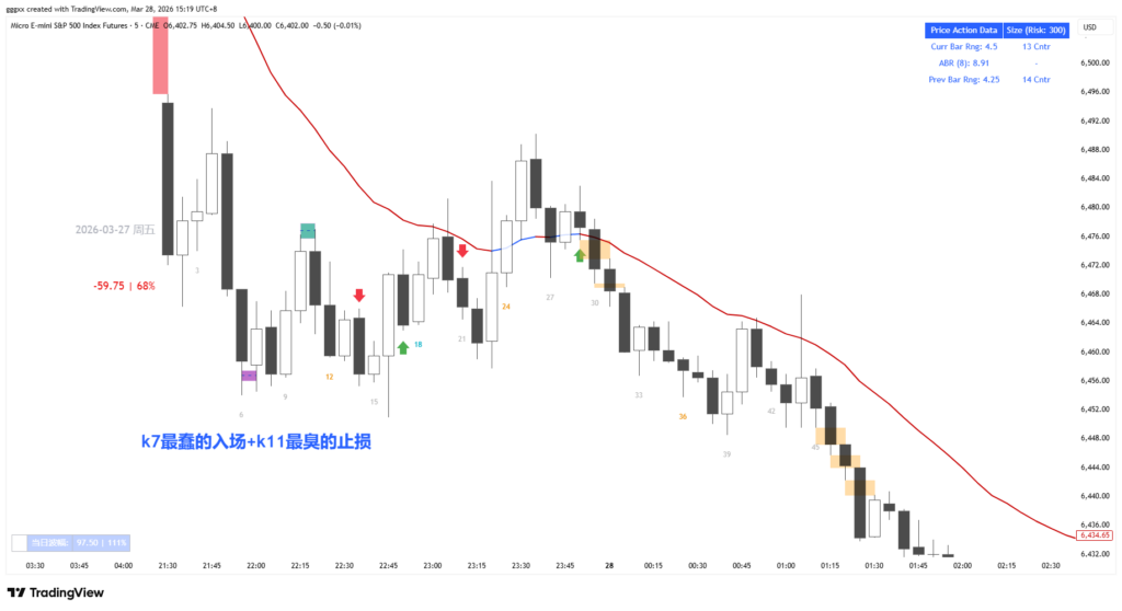 【交易复盘 05】28收线后stop做多。 实际上我不应该在这里入场。这种信号其实挺差的;同时昨天k23-25我一直怀疑是区间内的2leg trap ,所以k26是合理的做空。 那么k28属于k26-27的单根k回调。