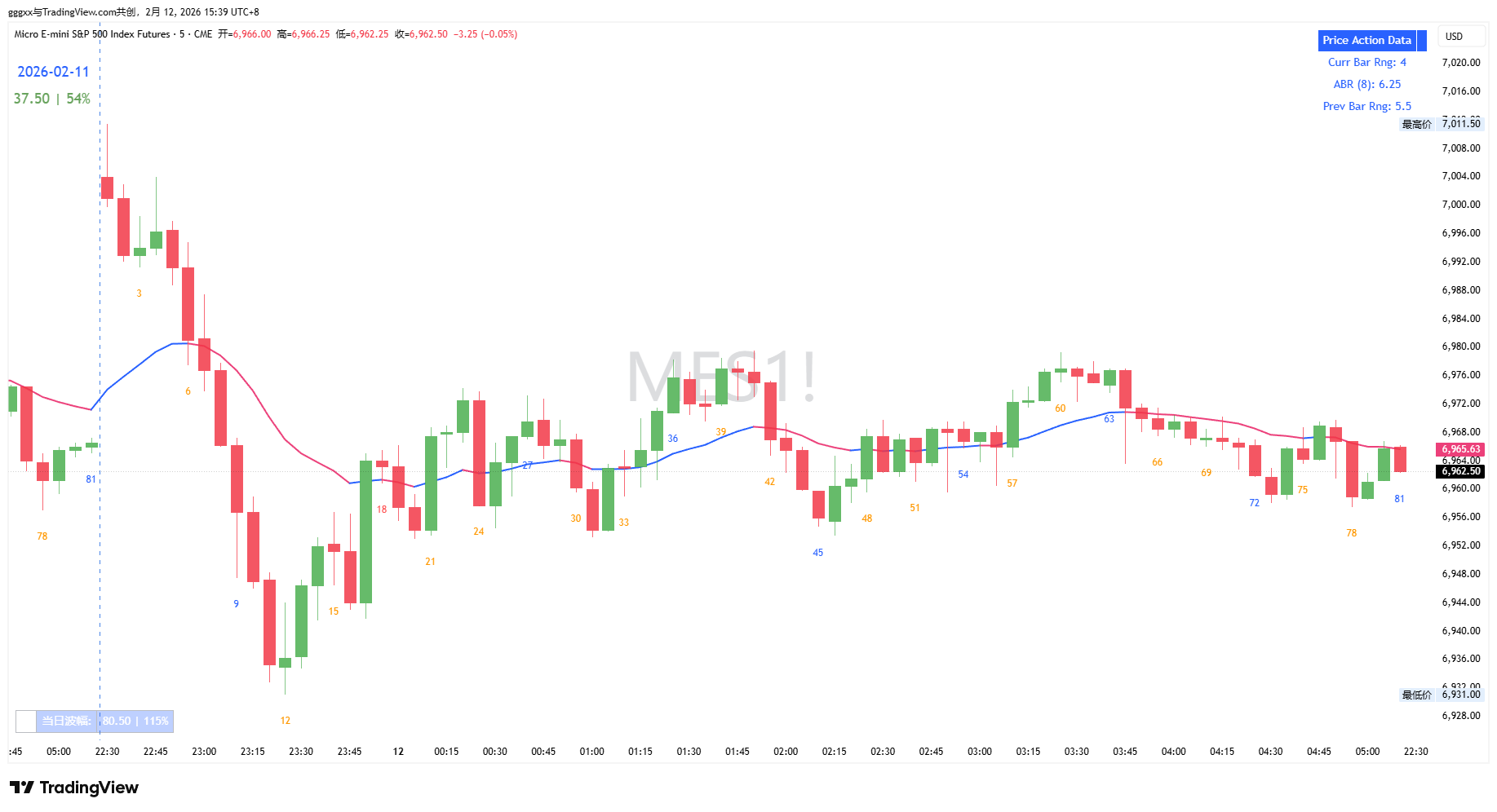 第五单:K36收线后,此时K32-35是5 bar MC,于是我在k36的中点挂limit订单,K37成交,K41高点附近scalp止盈离场。