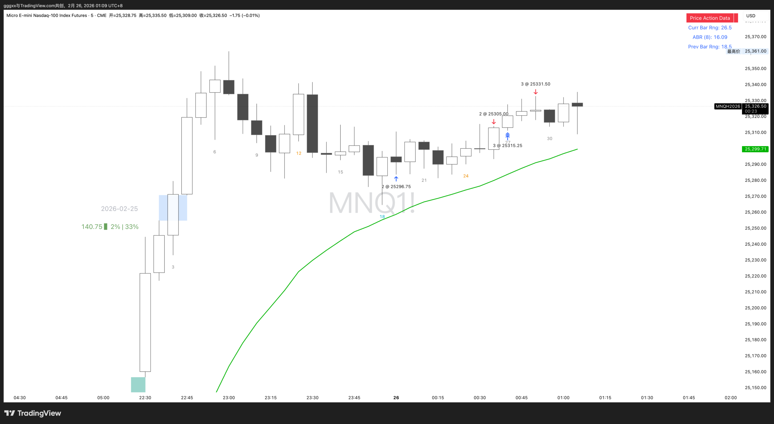 可以看下昨天的走势 S&P 500 PA Review (MES): 2026.02.24,我在k8做多。 k9是leg2. k10是一个非常好的H2入多入场。