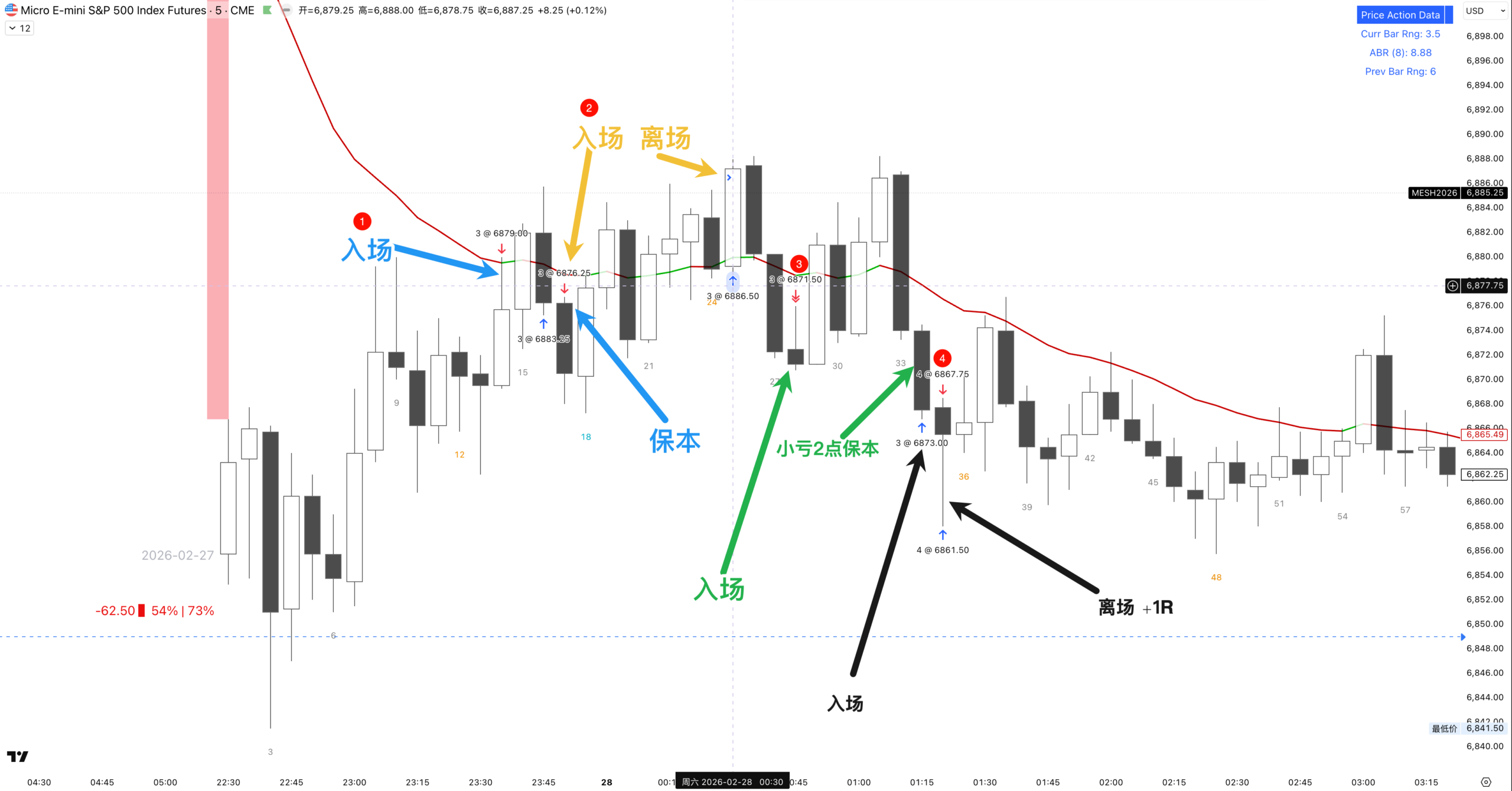 是的,我先前预期是MTR ,但是我看到了k29 k30 k32 k33,这些各种互相调戏互相trap,导致我目前还持仓的第三单,根本无法拿住,于是我在BE的位置离场,于k34成交。